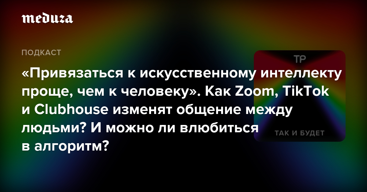«Привязаться к искусственному интеллекту проще, чем к человеку». Как Zoom, TikTok и Clubhouse изменят общение между людьми? И можно ли влюбиться в алгоритм?