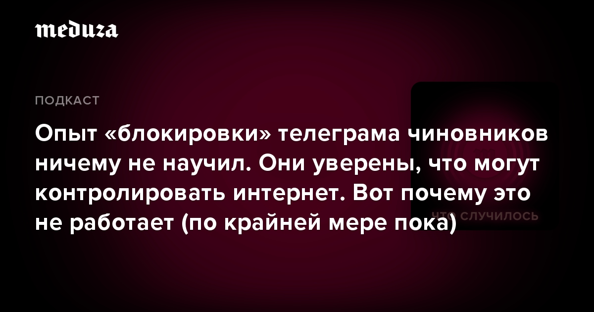 🎙Подписывайтесь на подкаст «Что случилось», мы есть на всех основных платформах: Apple Podcasts, Google Podcasts, Castbox, на «Яндекс.Музыке» и других подкаст-сервисах. А также подписывайтесь на ютьюб-канал с нашими подкастами, там тоже можно комментировать главные новости дня. Пишите нам по адресу [email protected] или в телеграм @meduzalovesyou.