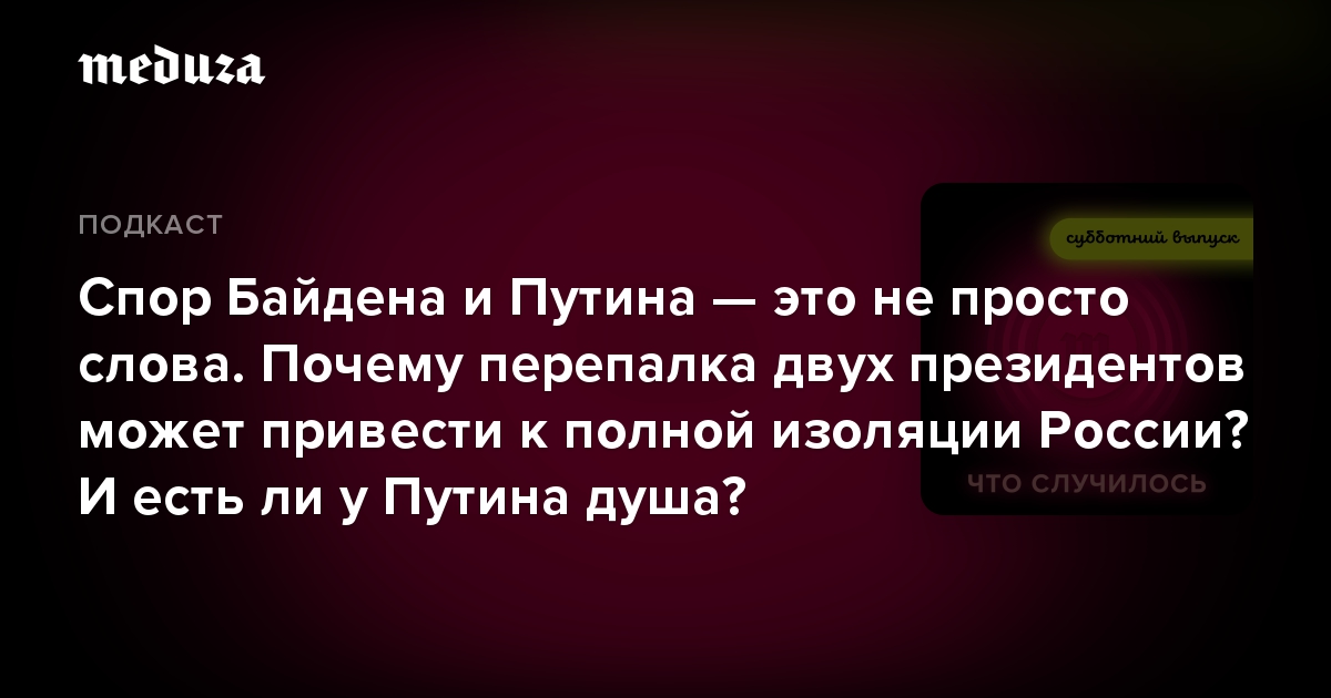 🎙Подписывайтесь на подкаст «Что случилось», мы есть на всех основных платформах: Apple Podcasts, Google Podcasts, Castbox, на «Яндекс.Музыке» и других подкаст-сервисах. А также подписывайтесь на ютьюб-канал с нашими подкастами, там тоже можно комментировать главные новости дня. Пишите нам по адресу [email protected] или в телеграм @meduzalovesyou.