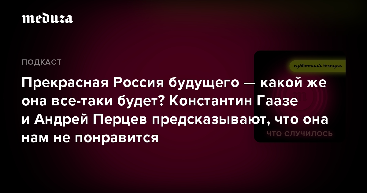 А в этом эпизоде журналист Андрей Перцев и социолог Константин Гаазе (в том числе после ваших вопросов на встрече в клабхаусе) решили всерьез порассуждать о «прекрасной России будущего». Это сочетание Навальный часто использовал, когда говорил о преобразованиях, которые он намерен провести в случае прихода к власти. Политик даже пытался зарегистрировать партию «Россия будущего».