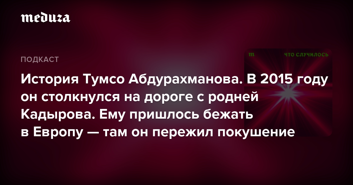 В новом эпизоде подкаста «Что случилось» говорим с Тумсо Абдурахмановым.