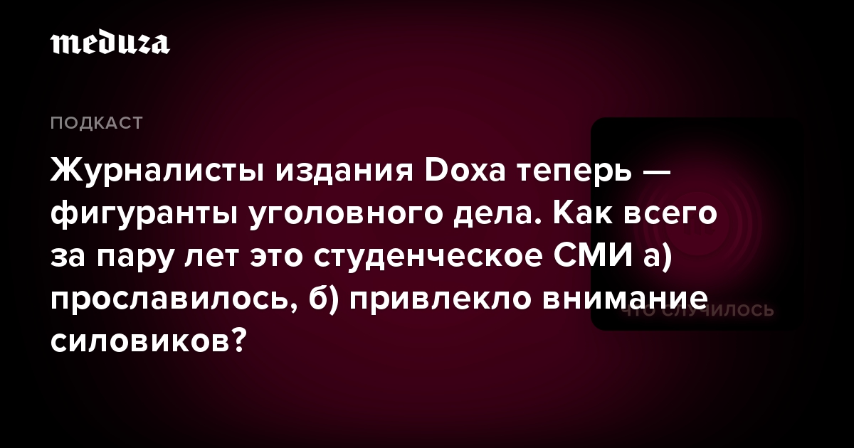 В новом эпизоде подкаста «Что случилось» говорим с редакторами Doxa Екатериной Мартыновой и Мстиславом Гривачевым.