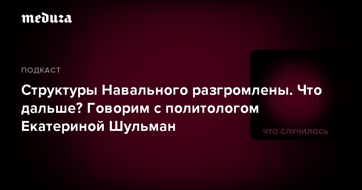 В новом эпизоде подкаста «Что случилось» говорим с политологом, кандидатом политических наук Екатериной Шульман: