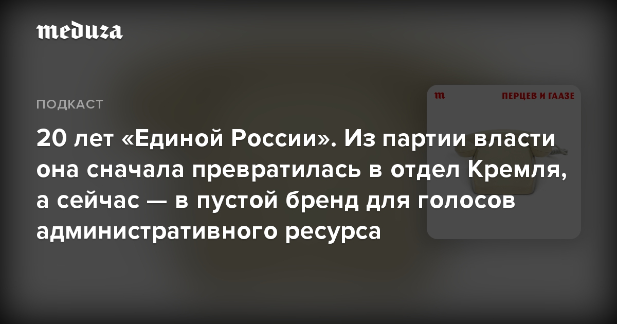 По формальным признакам «Единую Россию» нельзя назвать классической партией — у нее нет явной идеологии. Партией власти ее тоже сложно считать — она не определяет политику в России. Зачем еще нужна эта структура? В новом эпизоде политического шоу «Перцев и Гаазе» ведущие рассказывают историю «Единой России» и разбираются, во что она превратилась к 20-летнему юбилею.