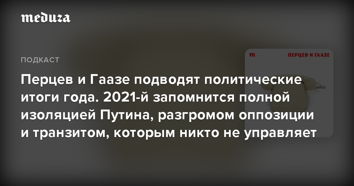 🎙 «Перцев и Гаазе» — еженедельный политический подкаст «Медузы». Его можно послушать на всех аудиоплатформах. И обязательно подписывайтесь на наш ютьюб-канал — там выходят видеоверсии эпизодов.