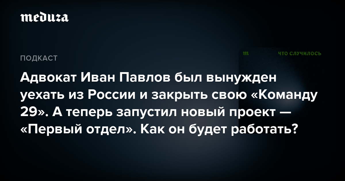 В новом выпуске «Что случилось» говорим с адвокатом, основателем «Первого отдела» Иваном Павловым.