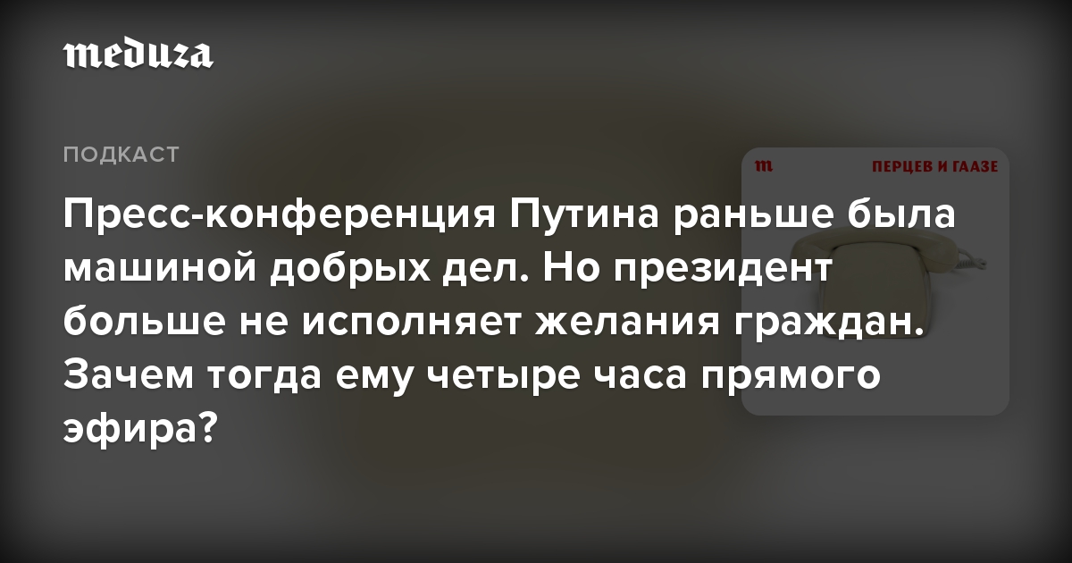 В последнем эпизоде года (но не последнем в сезоне!) Константин Гаазе и Андрей Перцев обсуждают пресс-конференцию президента и приходят к выводу: Путин больше не хочет показывать, что он готов исполнять желания простых граждан.
