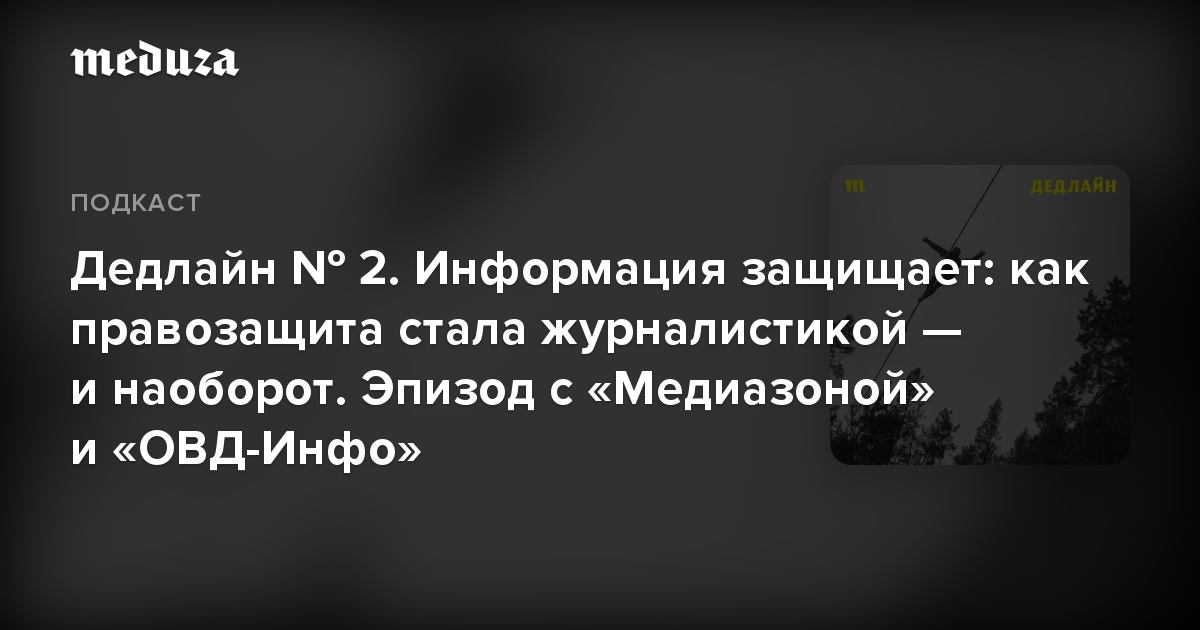 Это второй выпуск шоу «Дедлайн» — подкаста «Медузы» о медиа и журналистике. «Дедлайн» — о том, как медиа в России выживают и умирают, меняются сами и меняют мир, как «Профессия репортер» превратилась в «Запрещенную профессию», читатели — в подписчиков, а эта заметка — в «данное сообщение…».