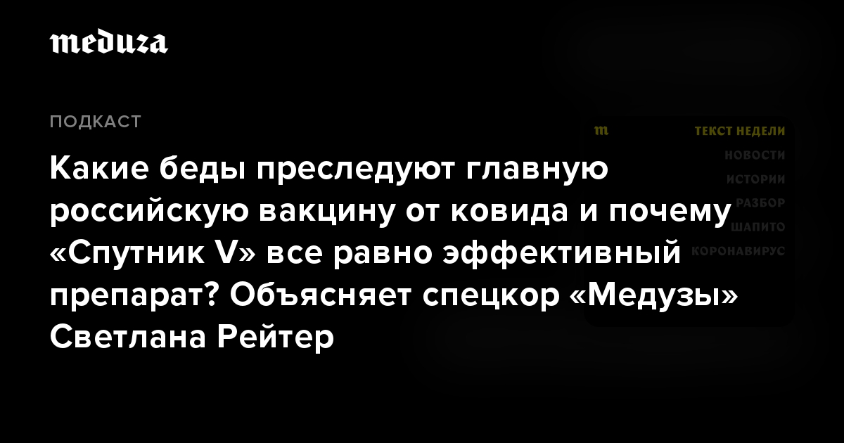 Специальный корреспондент «Медузы» Светлана Рейтер опубликовала масштабное расследование, посвященное российской вакцине от коронавируса «Спутник V». В нем рассказывается о том, как был разработан «Спутник», какие трудности возникают у его производителей и почему Запад не спешит признавать этот препарат. В новом выпуске подкаста «Текст недели» обсуждаем, похожа ли биография главной отечественной вакцины на историю успеха.