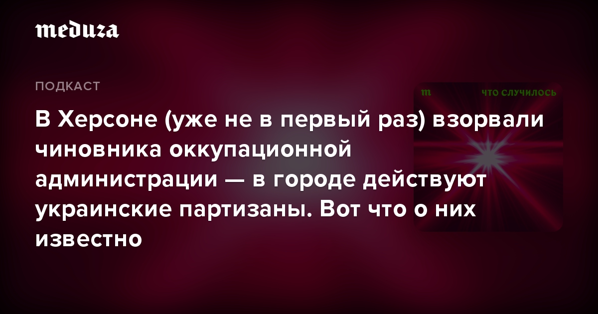 Журналист «Украинской службы Би-би-си» Олег Черныш в своей статье недавно рассказал о партизанах в Херсоне, которые борются с российской администрацией. Черныш утверждает, что на прошлой неделе они взорвали автомобиль местного чиновника Евгения Соболева и главы Чернобаевки Юрия Турулева — они выжили, но получили ранения. Чернышу рассказали, что, помимо покушений, украинские партизаны также расклеивают листовки с угрозами российским военным.