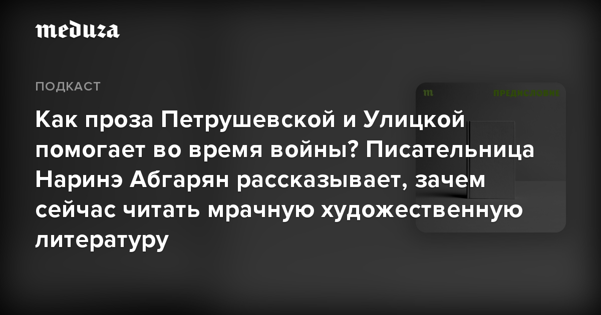 В этом выпуске «Предисловия» автор «Манюни» и других книг для детей и взрослых Наринэ Абгарян рассказывает Галине Юзефович, что она читает во время войны. А также признается, что ищет смыслы не только в литературе, но и в кино: писательница смотрит фильмы датского режиссера Карла Теодора Дрейера.