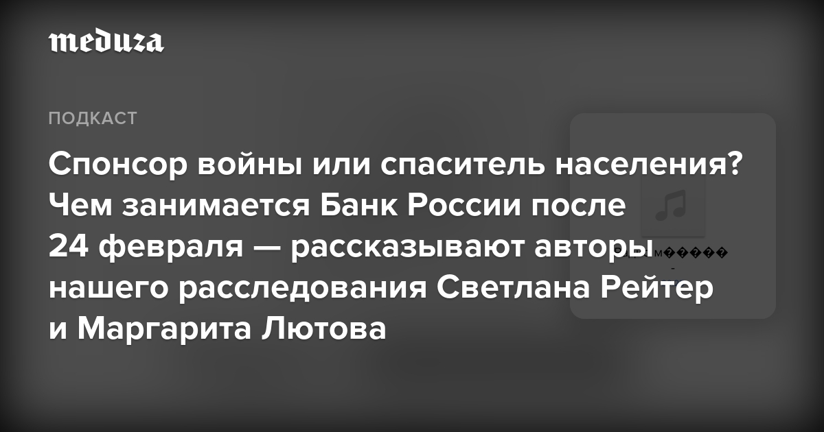 Какие настроения сейчас царят в Банке России и сможет ли регулятор совладать с надвигающейся катастрофой в экономике — в подкасте «Текст недели» рассказывают авторы расследования «Медузы» специальный корреспондент Светлана Рейтер и экономический журналист Маргарита Лютова.