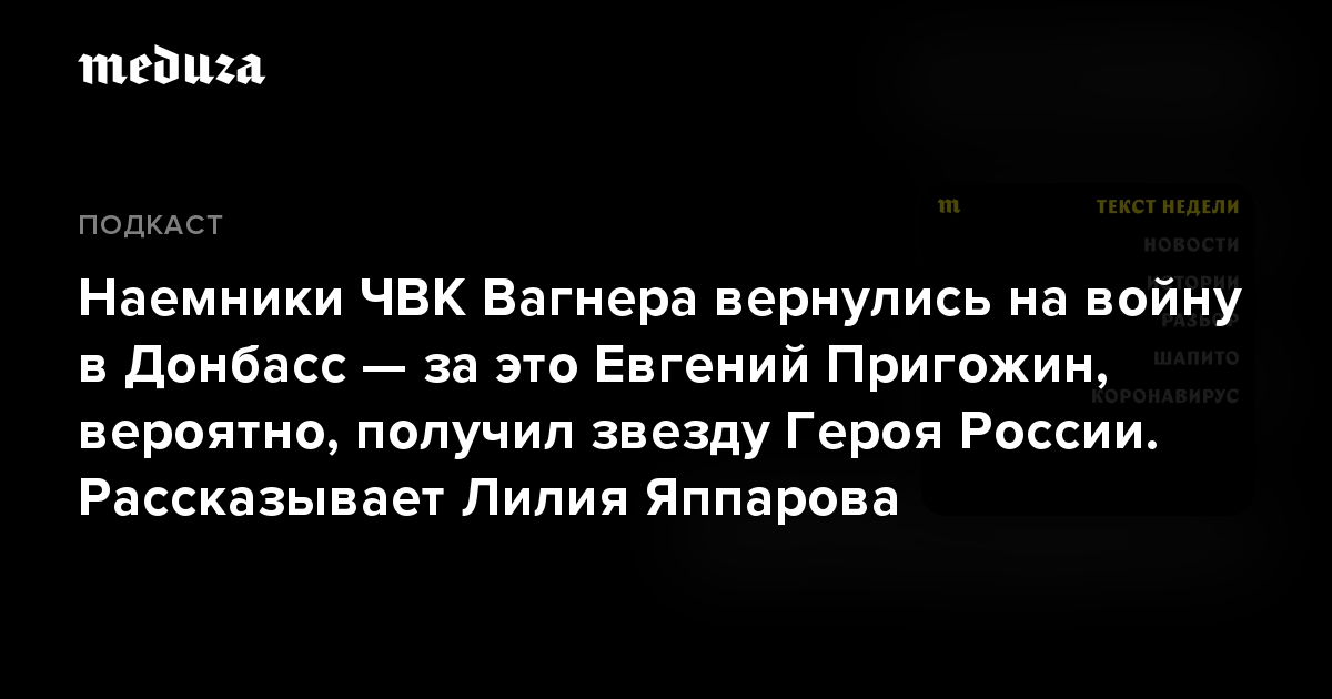 Специальный корреспондент «Медузы» Лилия Яппарова выяснила, какие российские ЧВК сейчас наиболее активно рекрутируют и отправляют наемников на войну в Украину и как этому способствуют российские власти. В подкасте «Текст недели» она рассказывает и про уже известные ЧВК Вагнера и «Редут», и про новый так называемый «собянинский полк».