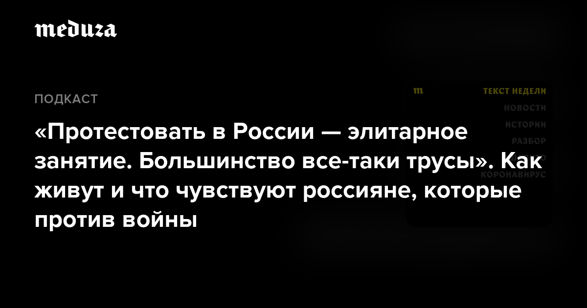 Специальный корреспондент «Медузы» Кристина Сафонова поговорила об этом с жителями разных городов России, несогласными с российской агрессией против Украины. Обсуждаем их истории в подкасте «Текст недели».