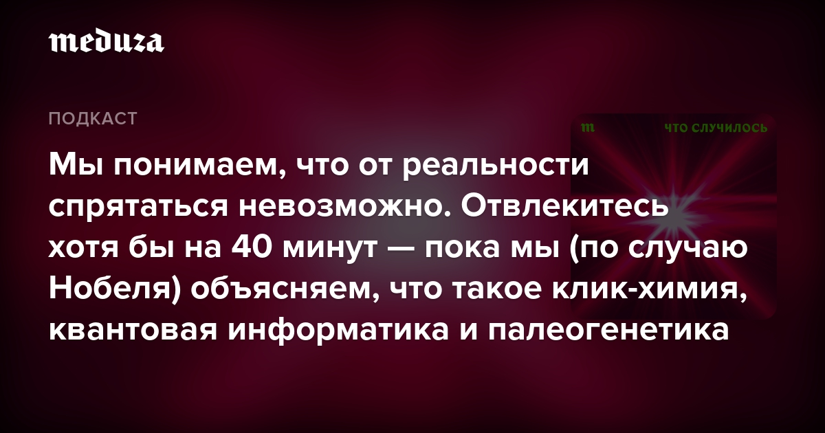 Все это звучит ужасно интересно, но для подавляющего большинства людей (и мы тут не исключение) совершенно не понятно. А вот научный редактор «Медузы» Александр Ершов во всем разобрался — и теперь пребывает в полном восторге. В этом выпуске он доступно объясняет, что именно сделали ученые и почему их открытия по-прежнему важны (даже несмотря на безумные времена).
