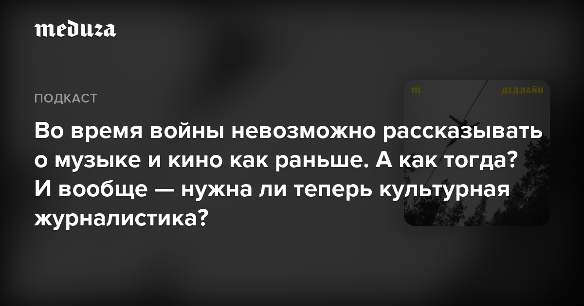 🎧 «Дедлайн» — подкаст «Медузы» о том, как изменилась работа медиа во время войны в Украине. Слушайте на основных аудиоплатформах и подписывайтесь, чтобы не пропустить новые эпизоды.