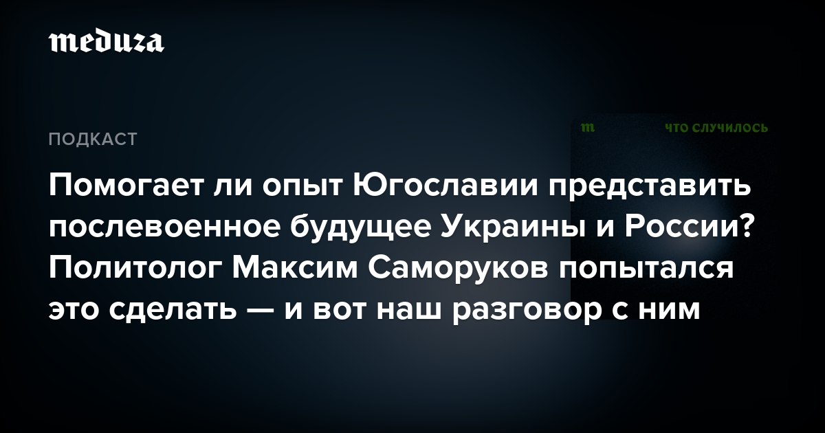 Эксперт Фонда Карнеги Максим Саморуков написал большой текст об исходе этого военного конфликта и других конфликтов, сопровождавших распад социалистической республики.