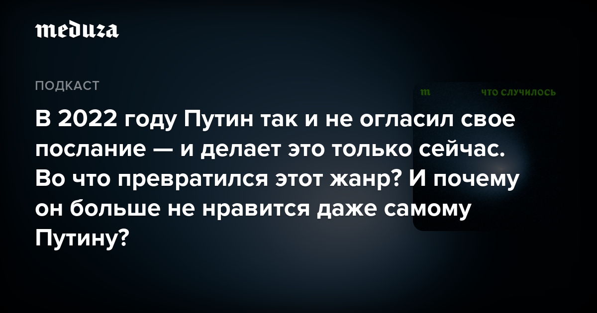 Обсуждаем со специальным корреспондентом «Медузы» Андреем Перцевым, как устроены послания президента и какую роль они играют в российской политической системе.