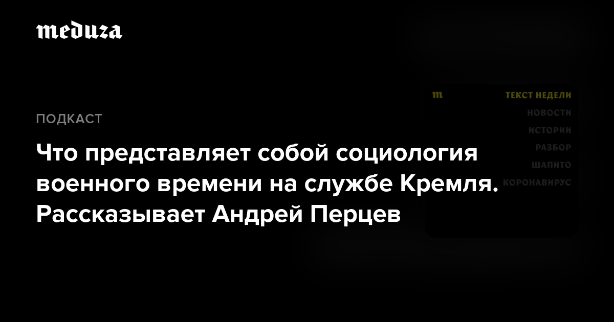 Как приближенные к власти социологи манипулируют общественным мнением и какую картину мира рисует для россиян Кремль, в подкасте «Текст недели» рассказывает специальный корреспондент и политический обозреватель «Медузы» Андрей Перцев.