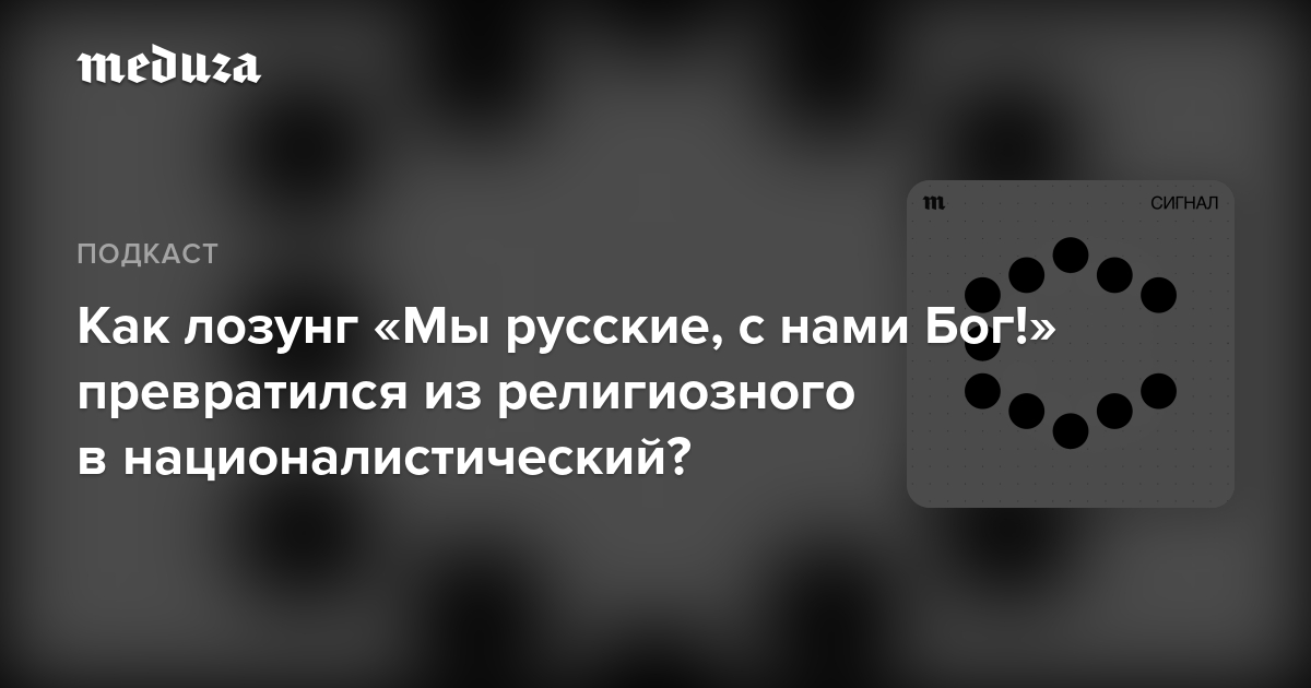 Слоган «Мы русские, с нами Бог!» распространился в нулевые, с расцветом движения русских националистов. В десятые россияне отправлялись под ним воевать в Донбасс. А ныне под ним отправляют в Украину мобилизованных.