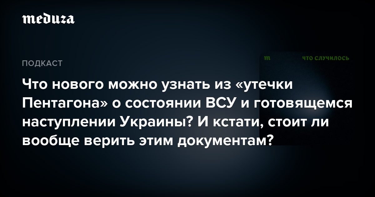 Говорим с Дмитрием Кузнецом, главным экспертом «Медузы» по войне, о публикации (предположительно) секретных документов Пентагона и влиянии предполагаемой утечки на украинское контрнаступление.