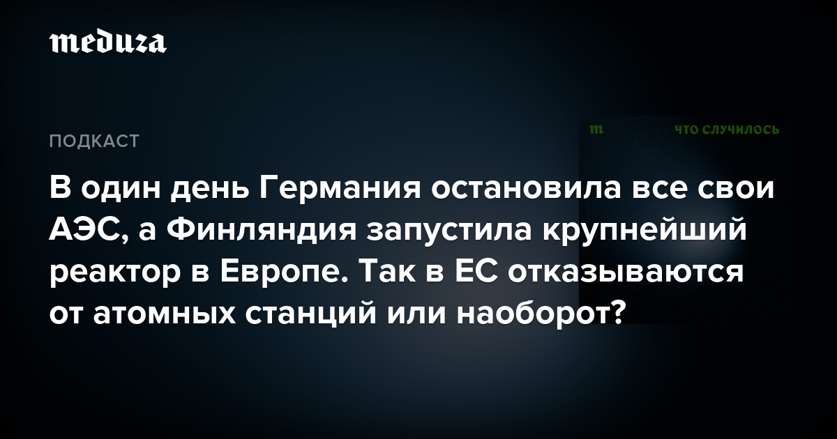 Одновременно с отключением немецких АЭС в Финляндии запустили в промышленную работу свой ядерный реактор — крупнейший в Европе. Развивать атомную энергетику также рассчитывают Швеция, Франция, Великобритания и другие страны континента.