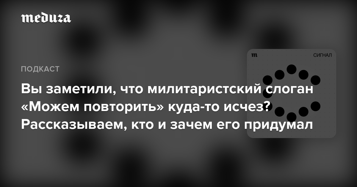 Письмо о лозунге «Можем повторить» вышло в рассылке «Сигнал» к 9 мая 2022 года. Ровно год спустя мы читаем это письмо в новом выпуске подкаста «Сигнал» — и прислушиваемся к тому, что изменилось и что осталось неизменным в использовании и восприятии этого слогана.