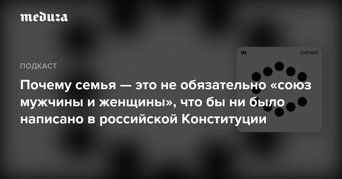 В новом выпуске «Сигнала» рассказываем, почему «союз мужчины и женщины» — это идеологема, которая легко превращается в инструмент дискриминации, и почему невозможно объективное и универсальное определение семьи.