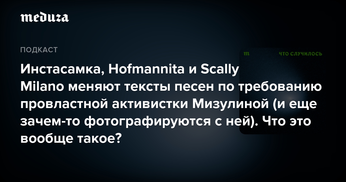 29 мая глава провластной общественной организации Лига безопасного интернета Екатерина Мизулина опубликовала в своем телеграм-канале фото с рэп-исполнительницами Hofmannita и Инстасамка. Мизулина рассказала о проведении с артистками «рабочей встречи».