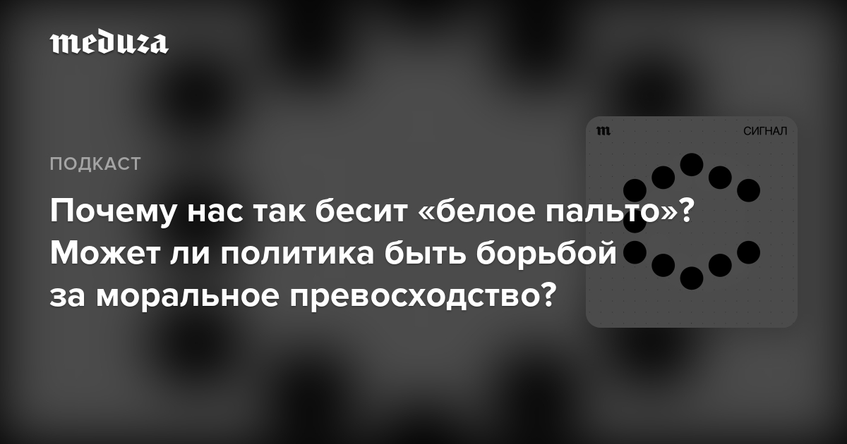 Новый выпуск подкаста «Сигнал» — о «белом пальто» и о том, обязательно ли политику быть хорошим человеком.