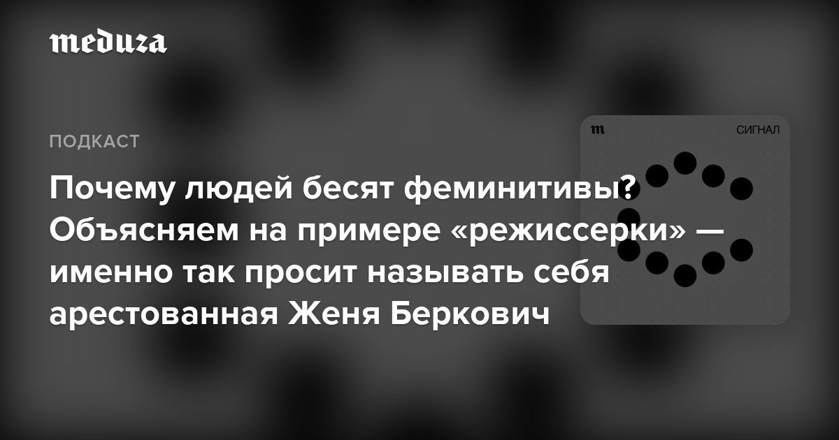 Новый эпизод подкаста «Сигнал» — о феминитивах. Не только о том, что ничего страшного в них нет, но и о том, почему многим кажется, что нечто страшное в них все-таки есть.