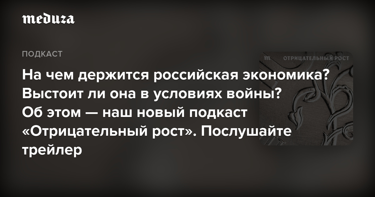 🎧 «Отрицательный рост» будет выходить по понедельникам. Подпишитесь, чтобы не пропустить премьеру 2 октября. Подкаст есть на всех основных аудиоплатформах и, конечно, в приложении «Медузы» — этот способ нас читать и слушать самый надежный, поскольку приложение умеет обходить блокировки и работает без VPN.