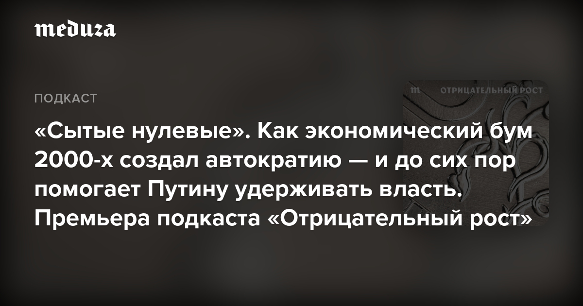 В первом эпизоде подкаста «Отрицательный рост» ведущая Маргарита Лютова рассказывает, что же это была за эпоха — «сытые нулевые», почему она наступила и почему ушла (скорее всего, безвозвратно). А еще, конечно, чем она в конечном счете обернулась для страны — и как помогла становлению российской автократии.