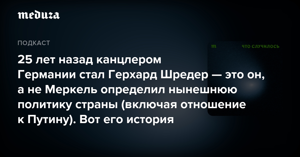 В этом выпуске «Что случилось» историю Шредера рассказывают ведущие другого подкаста «Канцлер и Бергхайн» (он посвящен немецкой политике). Это журналист Дмитрий Вачедин и политический аналитик Алекс Юсупов.