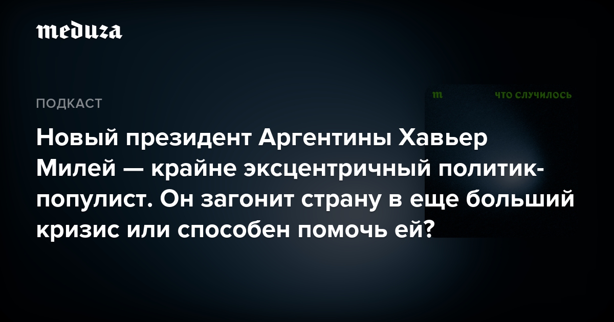 19 ноября в Аргентине прошел второй тур президентских выборов. Победу на них одержал правый популист Хавьер Милей. Он обошел своего оппонента, министра экономики Серхио Массу, и набрал почти 56% голосов.