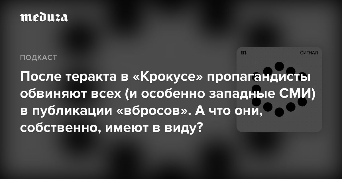 Это понятие очень размыто. Чаще всего власти даже сами не знают, что имеют в виду, кроме того, что это что-то очень неприятное. Свежий эпизод подкаста «Сигнал» — о том, что же все-таки такое «вброс» и как с помощью этого слова Кремль «переключает» новостную повестку в России.