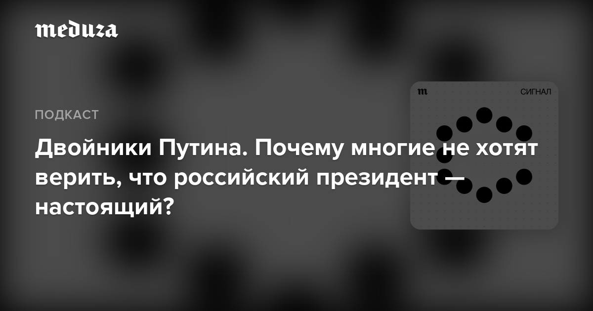 В свежем эпизоде подкаста «Сигнал» мы изо всех сил постараемся сохранить серьезность и разобраться, почему многим людям так хочется верить в то, что Владимир Путин — ненастоящий.