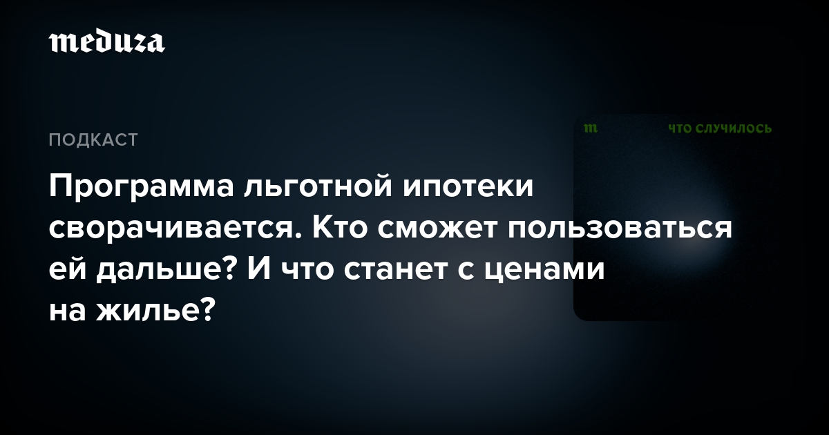 Как прямо сейчас в России происходит фактически отказ от программы стимулирования спроса на жилье? И как это скажется на ценах на квартиры в России? Объясняет специальный корреспондент «Медузы» Маргарита Лютова.