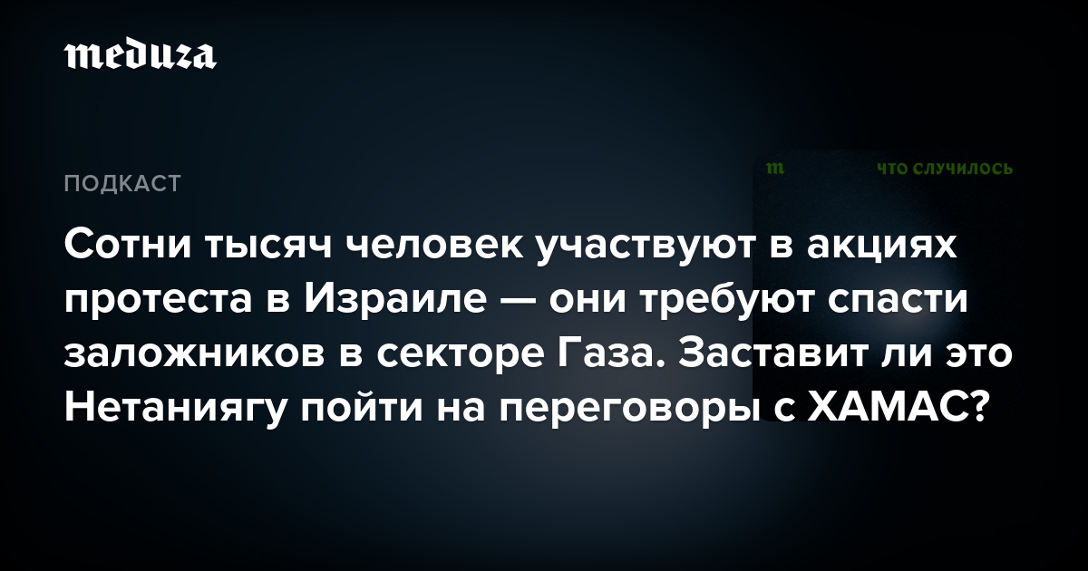 Пойдут ли власти Израиля на переговоры с ХАМАС из-за протестов? Обсуждаем с Александрой Аппельберг — редактором израильского издания «Детали» и ведущей телеграм-канала «Аппельберг».