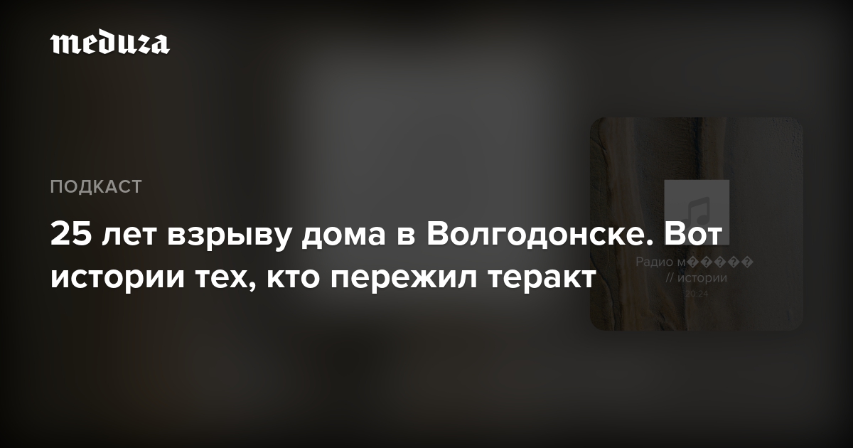 К 25-й годовщине теракта мы записали аудиоверсию репортажа 2019 года о том, что происходило в Волгодонске — и как пострадавшие продолжают добиваться помощи от государства. Прочитать текст можно здесь.