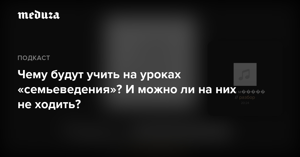 Чего ждать от «семьеведения»? Кто его преподает? И можно ли пропускать такие уроки? Послушайте аудиоверсию разбора «Медузы». Прочитать текст можно здесь.