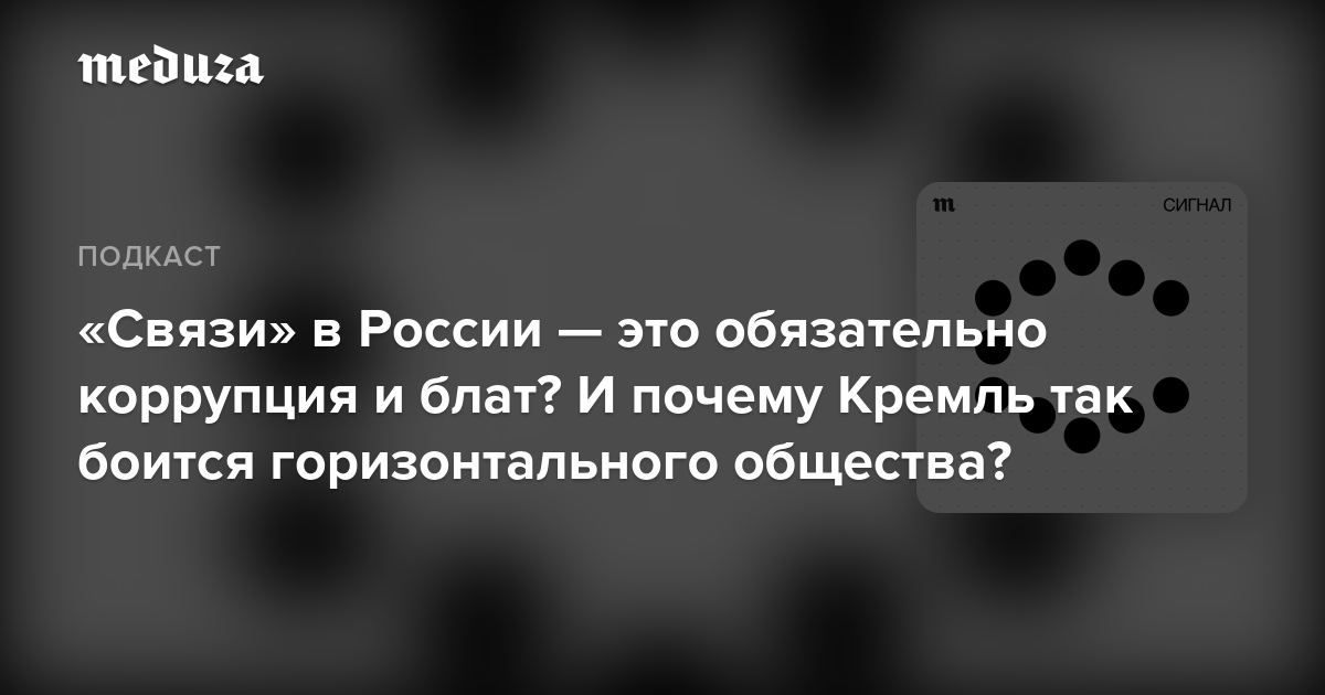 Как работают горизонтальные связи в России? Они когда-нибудь приведут страну к демократии? А «связи» (то есть коррупция и блат) — это тоже горизонтальное общество? Выясняем в этом эпизоде «Сигнала».