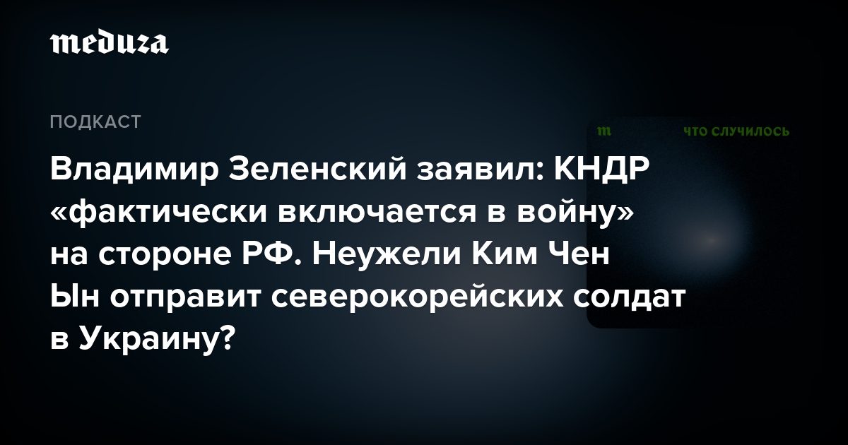 14 октября президент Украины Владимир Зеленский заявил, что КНДР «фактически включается в войну», отправляя своих граждан воевать в Украину в составе российских войск. По данным западных изданий, Северная Корея также поставляет в Россию артиллерийские снаряды и помогает войскам РФ наносить удары по Украине.