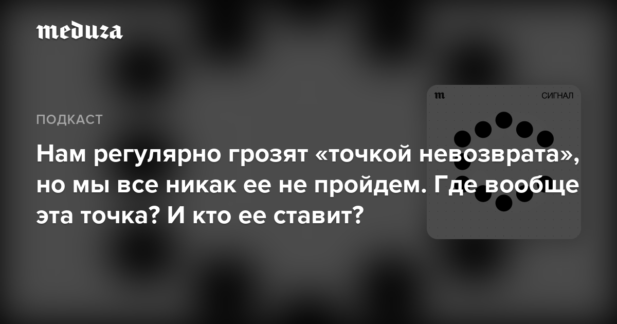 Политики и пропагандисты, журналисты и блогеры, экономисты и биржевые аналитики постоянно говорят о «точке невозврата». Государственные деятели грозят этой точкой друг другу и произвольно ставят ее в возможном будущем, чтобы управлять общественным мнением.