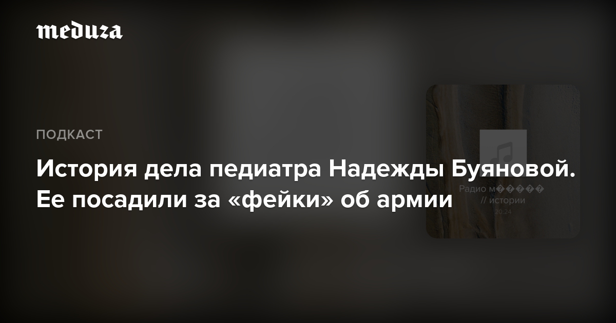 Педиатра Надежду Буянову приговорили к пяти с половиной годам лишения свободы по уголовному делу о «фейках» про российскую армию. Дело в отношении врача завели после жалобы вдовы погибшего участника войны в Украине. В феврале 2024 года посетительница обвинила Буянову в том, что во время приема она якобы назвала ее мужа «законной целью Украины».