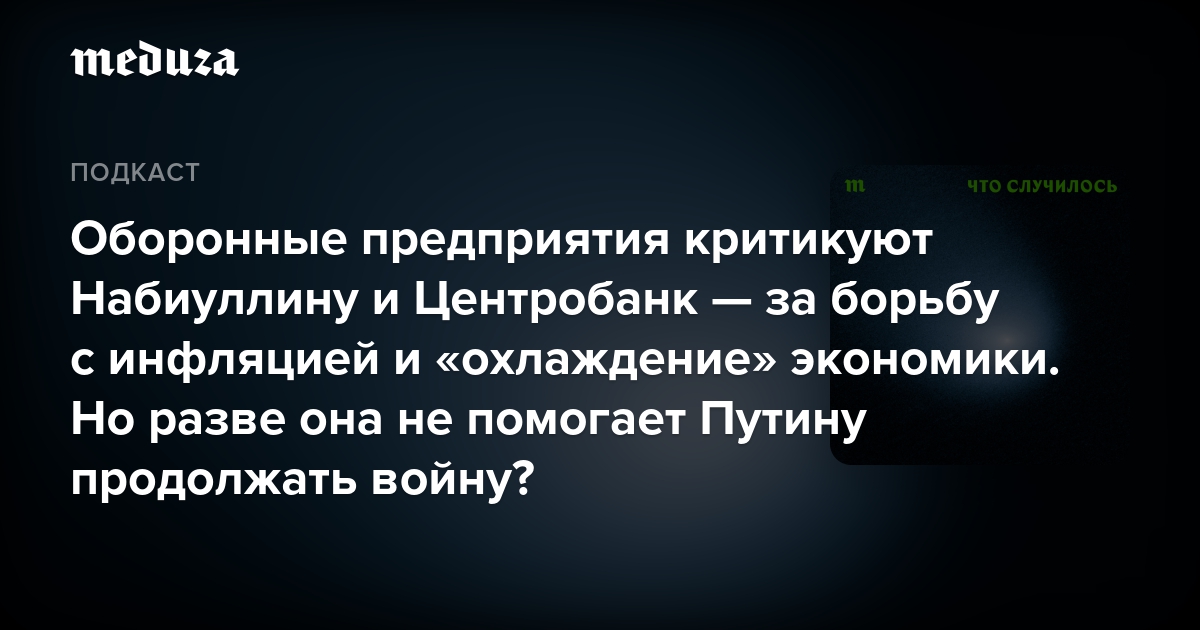 Насколько успешно ЦБ РФ справляется с инфляцией? И что будет с экономикой России и ее ресурсами на войну, если эту борьбу остановить? Гостья этого выпуска — Александра Прокопенко, ведущая подкаста «Вид на Кремль» и научный сотрудник Берлинского центра Карнеги по изучению России и Евразии.