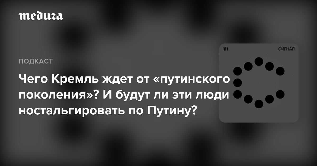 В этом эпизоде «Сигнала» разбираемся, что такое «путинское поколение» — и станет ли оно опорой ностальгии по путинизму.