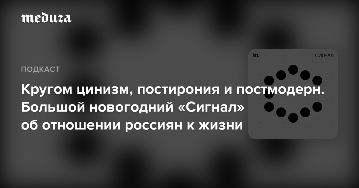 Разные авторы то и дело описывают Россию как страну победившего постмодерна, а ее граждан — почти сплошь как прожженных циников. Сами россияне обычно говорят, что на самом деле они не циники, а просто реалисты.