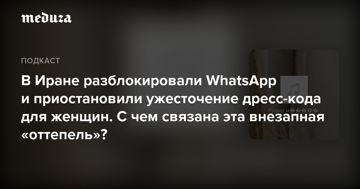 Похоже, режим в Тегеране пытается снизить напряженность в обществе и обезопасить себя после ряда внутренних и внешнеполитических неудач. Руководству Исламской Республики и правда есть чего опасаться? И свидетельствуют ли эти послабления о реальной готовности режима к переменам? Слушайте аудиоверсию текста востоковеда, автора книги «Всем Иран» Никиты Смагина. Прочитать материал можно здесь.