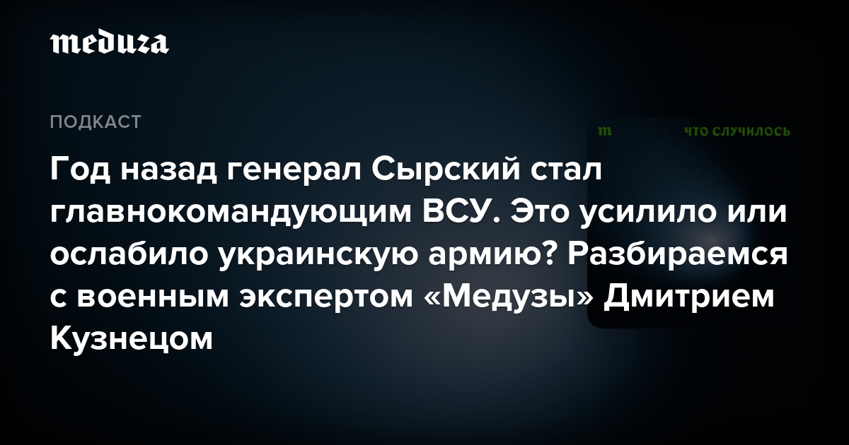 Как проявил себя Александр Сырский за год? И какое влияние оказал на стратегию ВСУ? Обсуждаем с военным экспертом «Медузы» Дмитрием Кузнецом.